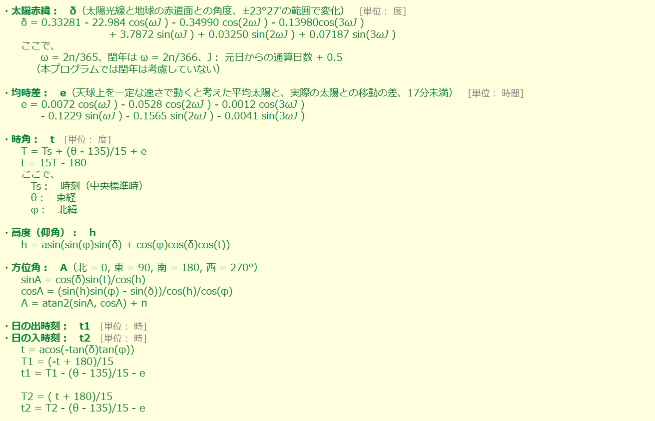 case 3: NSAGLsh = 53.95 ; EWAGLsr = 91 ; EWAGLsrt = 5*60+51 ; EWAGLsst = 17*60+48 ; break; //春分の頃