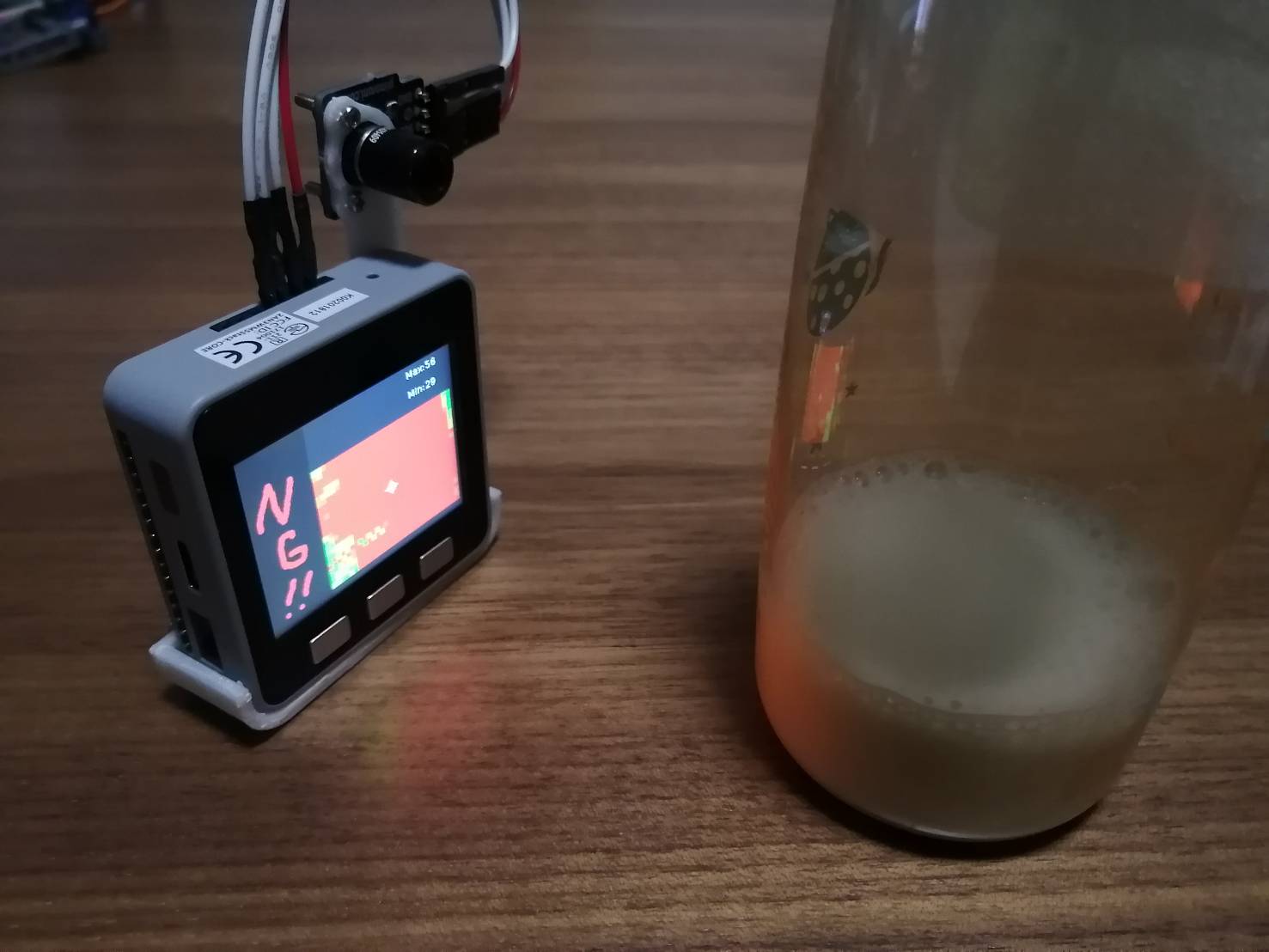 ミルクが人肌(40℃)まで冷めたかどうかを判定し、通知するシステム。