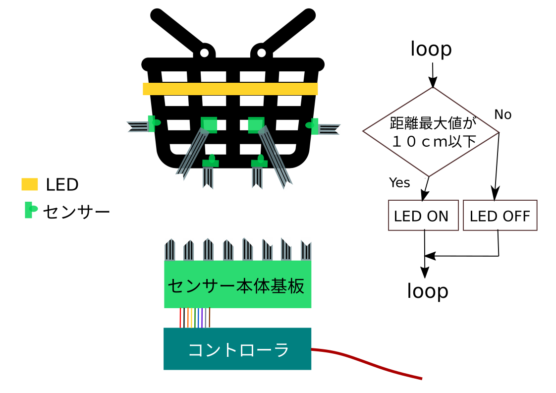 中に物が入っているとLEDが光って教えてくれるセンサーを作りました。お店などで忘れ物防止、盗難防止用です。これはAIカメラや焦電センサーなど他のセンサーでは無理だったり、面倒くさいですが非接触空間センサーを使うと簡単にできます。