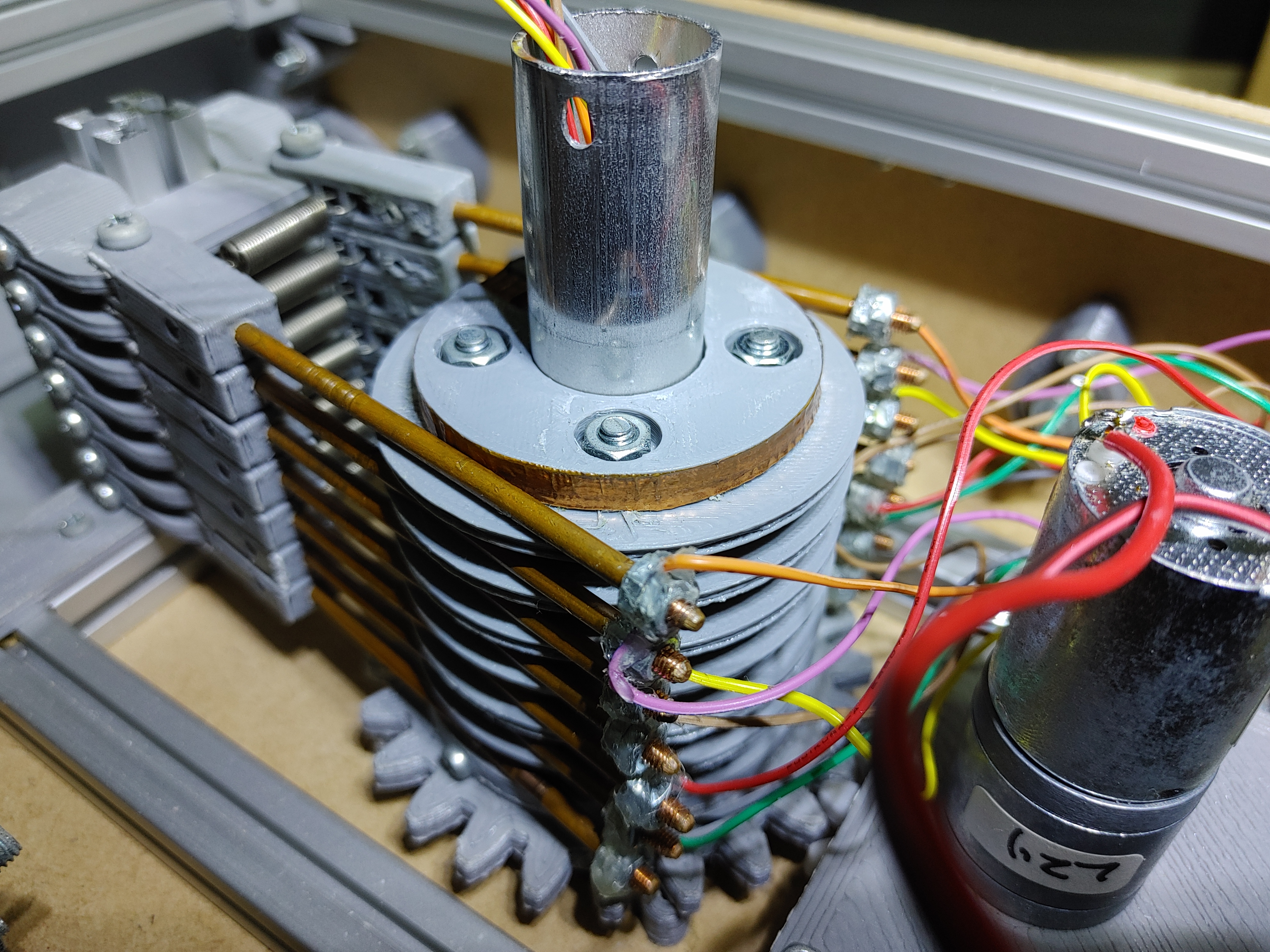 ④組み上げて、モータにより、リングが回転しながら、信号を固定台に伝えることができる