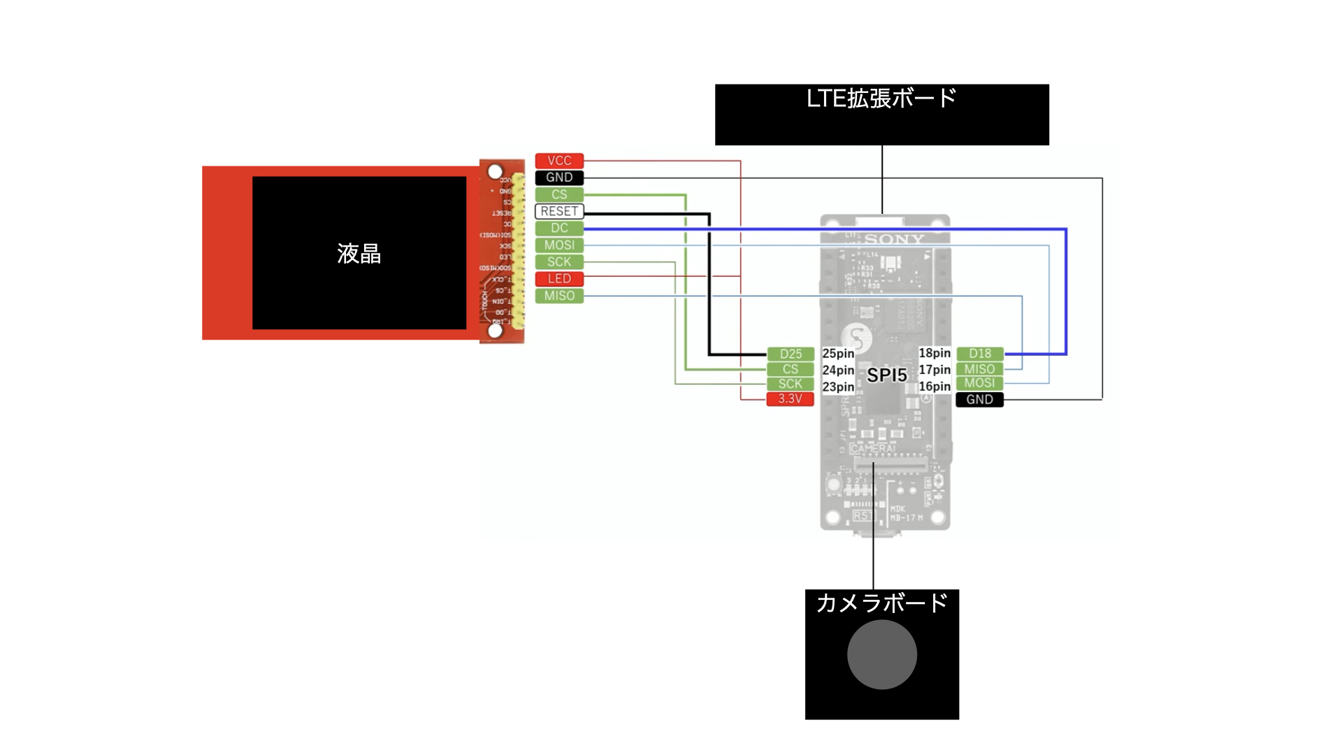 まずはこの構成でカメラ撮影と液晶表示ができるか確認してみます。