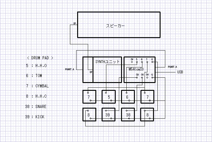 M5AtomS3を使って、M5Stack用MIDIシンセサイザユニット(SAM2695)でDRUM PADを作ってみました。