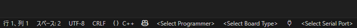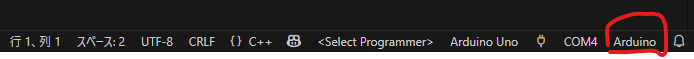先ほどまでなんか黄色くエラーだったところに「Arduino」の表示が出て、