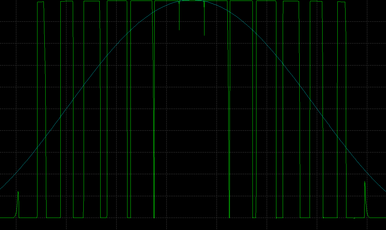 PWM波形と違い、概ねオン時間が固定されているのがわかります。