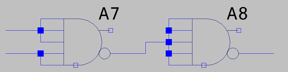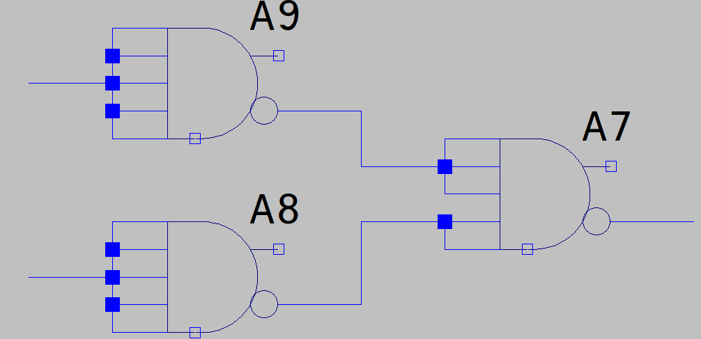 NAND回路はド・モルガンの法則によりNOT入力OR回路に等価できます。