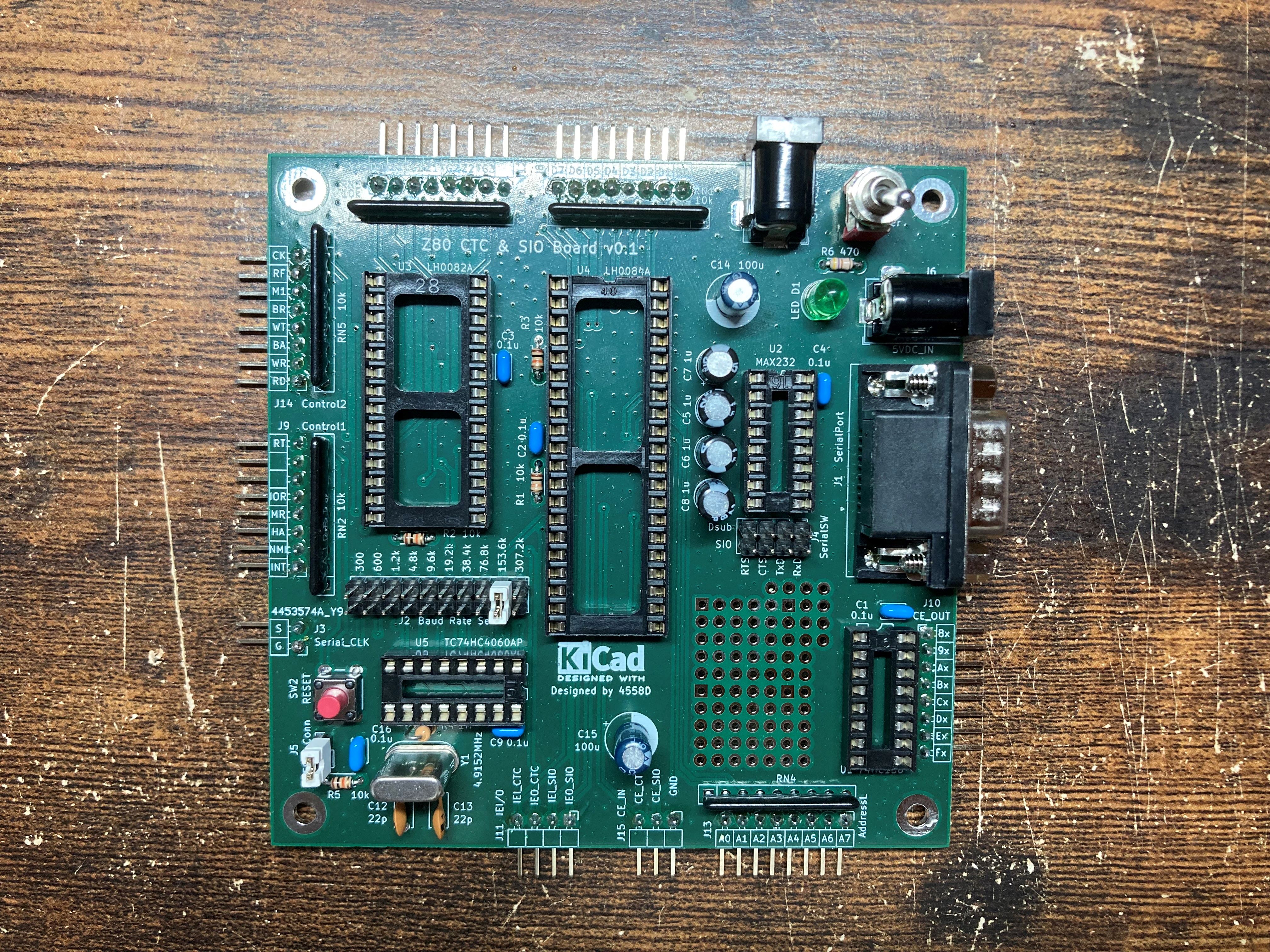 ・以前作成したZ80ワンボードコンピュータと組み合わせることで、Z80 CTC、および、Z80 SIOを使用できるようになった。