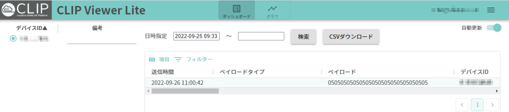 サンプルプログラムでも動作確認したのですが、LED表示的には送信が完了した状態であるが、何故かペイロードがダッシュボード上に表示されてこない・・・・