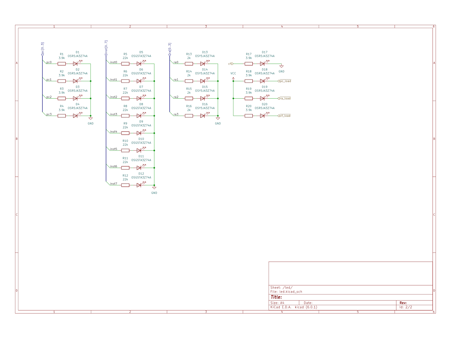 (動作を決定するROMが出力しているデータを表すLEDはデータが0のとき点灯するので、反転させてLEDの点灯状態からデータに変換する)