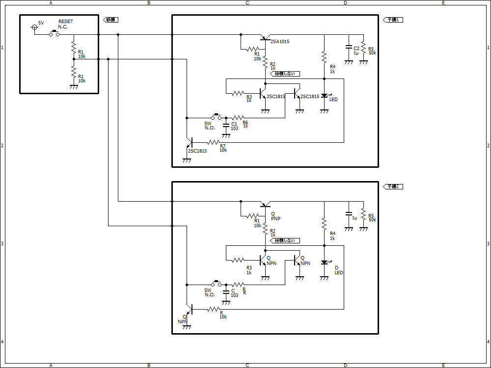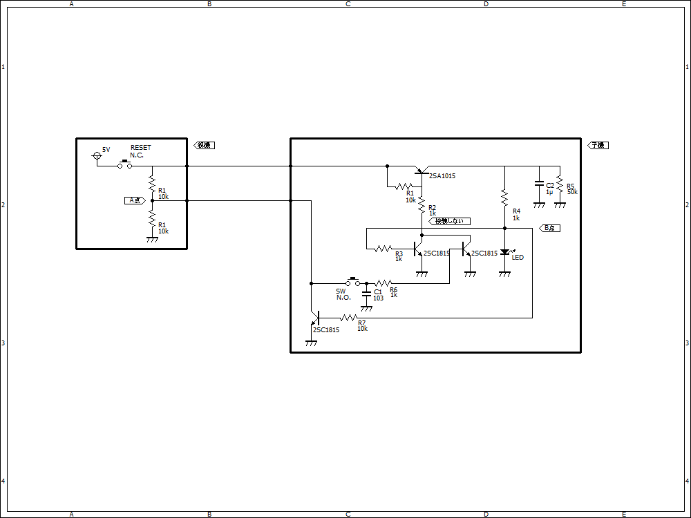 A点の電圧が0Vになると、ほかの子機のスイッチが押されてもON(LEDが点灯)することがありません。