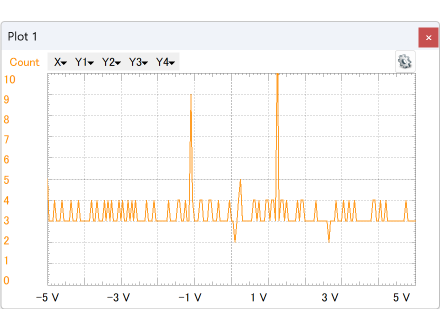 -5V から 5V まで、50mV ずつ上昇させながら測定した結果を示します。