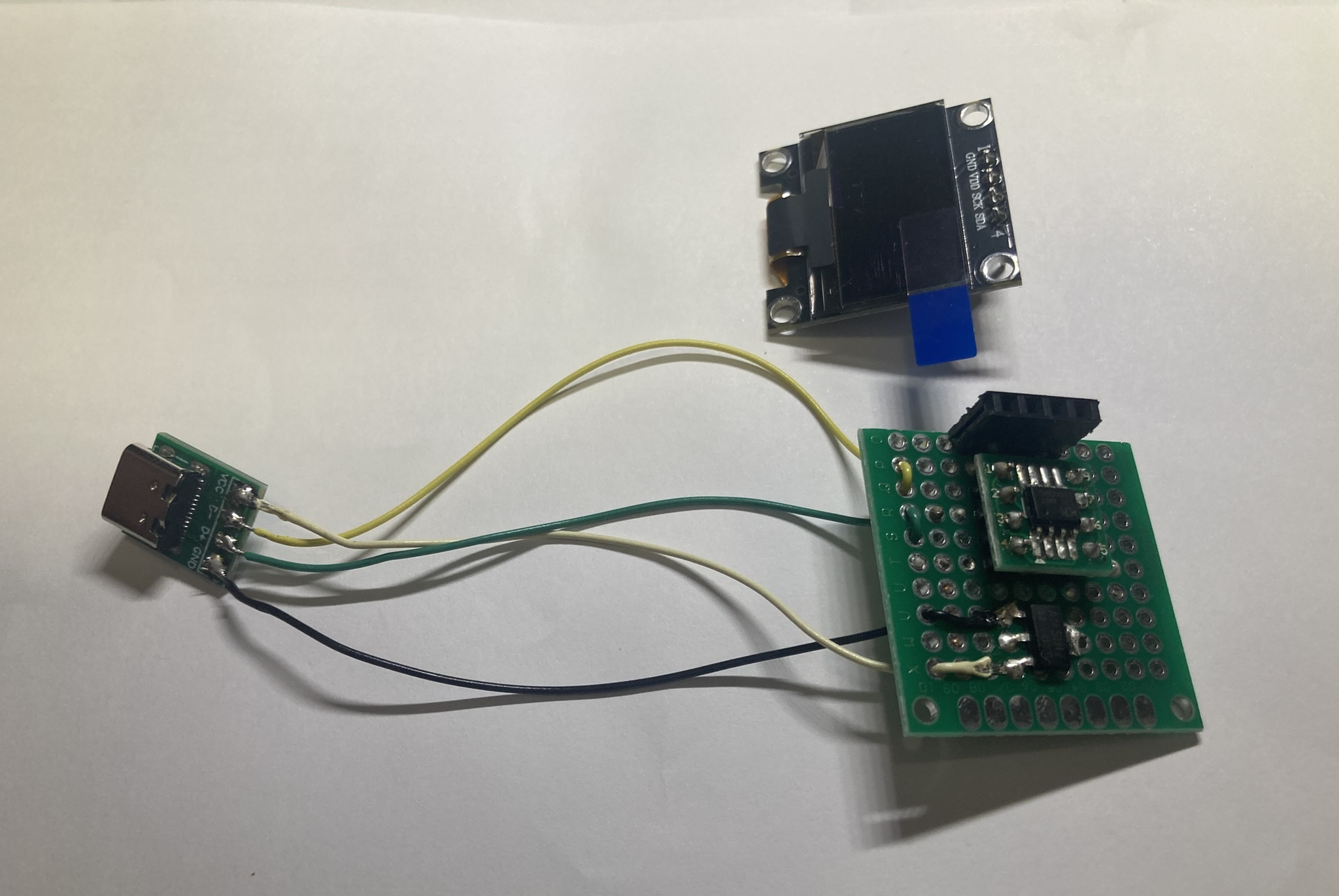 USBで接続する簡単なディスプレイを作りました。ディスプレイといっても128x64ピクセルの小さなOLED(SSD1306)です。制御マイコンも数十円のCH32V003J4M6です(物価高で値上がりしましたがそれでも50円くらい:2026/02/01現在秋月価格)。