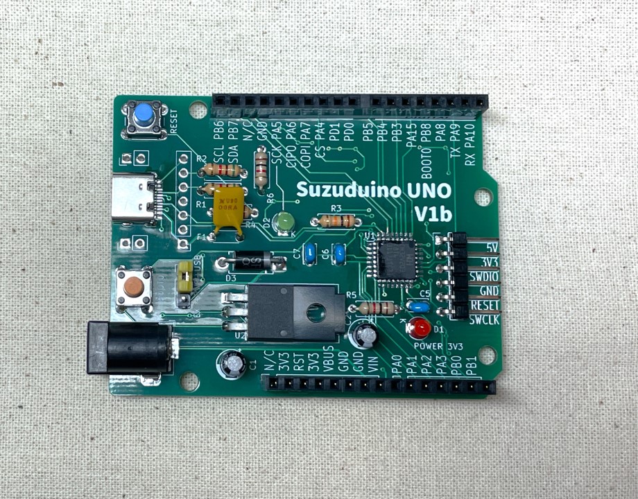 わたしのGitHubレポジトリ https://github.com/verylowfreq/suzuduino-uno-v1 に、基板の情報を置いています。部品表やサンプルプログラムもありますので、参考にしてください。