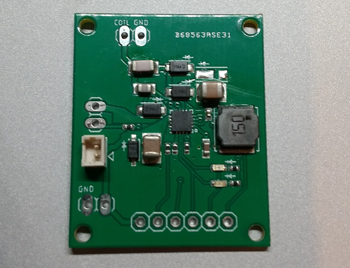 LTC4120のデータシートを参考にEagleで書いた回路を、PCBGOGOさんに基板作成と実装してもらいました。部品番号のシルクが無い(;^_^A