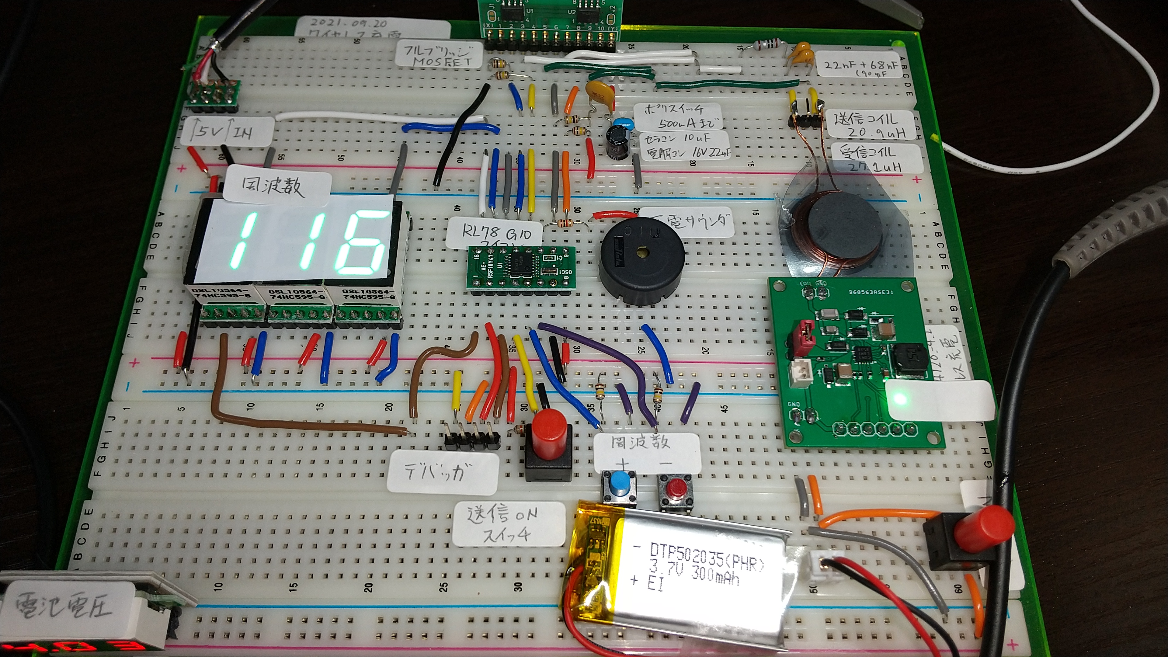 これから送信側のコイルや電源やらを変えてみて、実用できるように研究しようと思います。