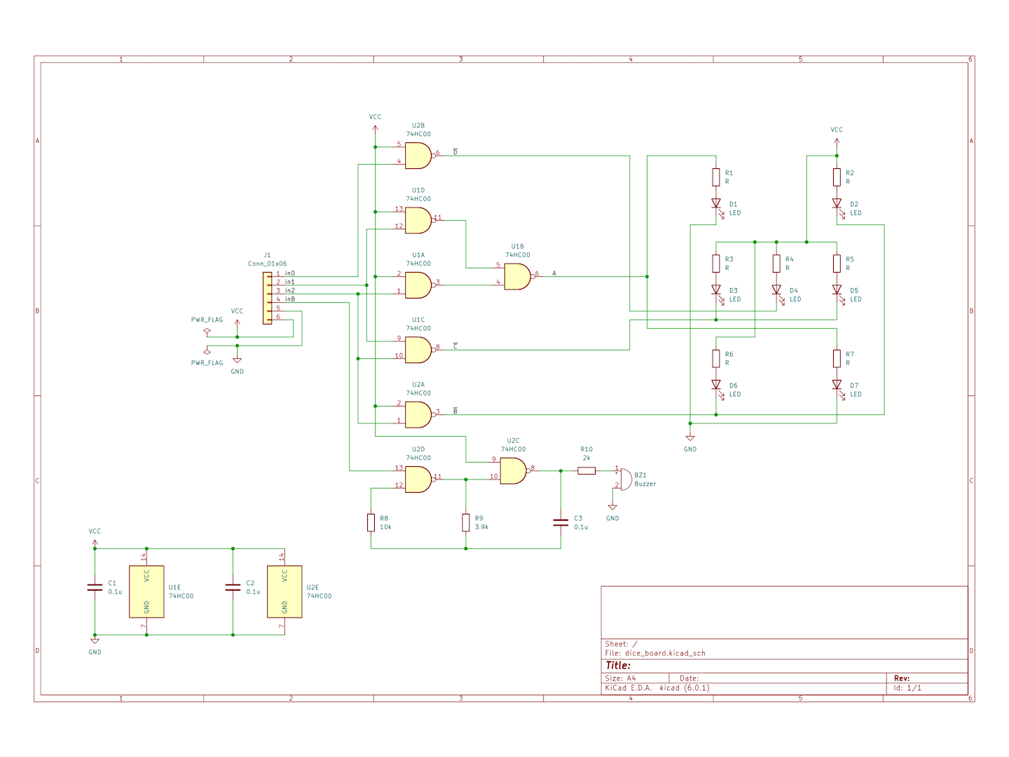 さらに、入力をそのまま出力するBFおよびDについても、入力の仕様を統一するためNOT (NANDの一方の端子をVCCに固定) を挟み、負論理で点灯させるようにした。