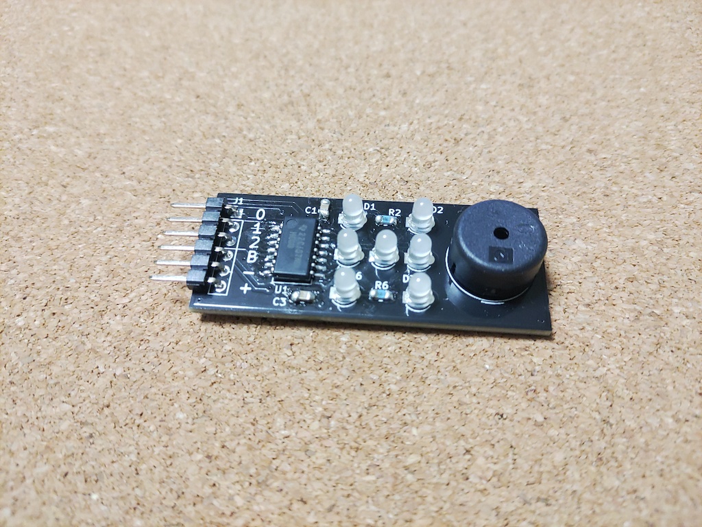 残りのNANDゲートを用いて発振回路を組み、オン/オフの信号でブザーを鳴らせるようにした。