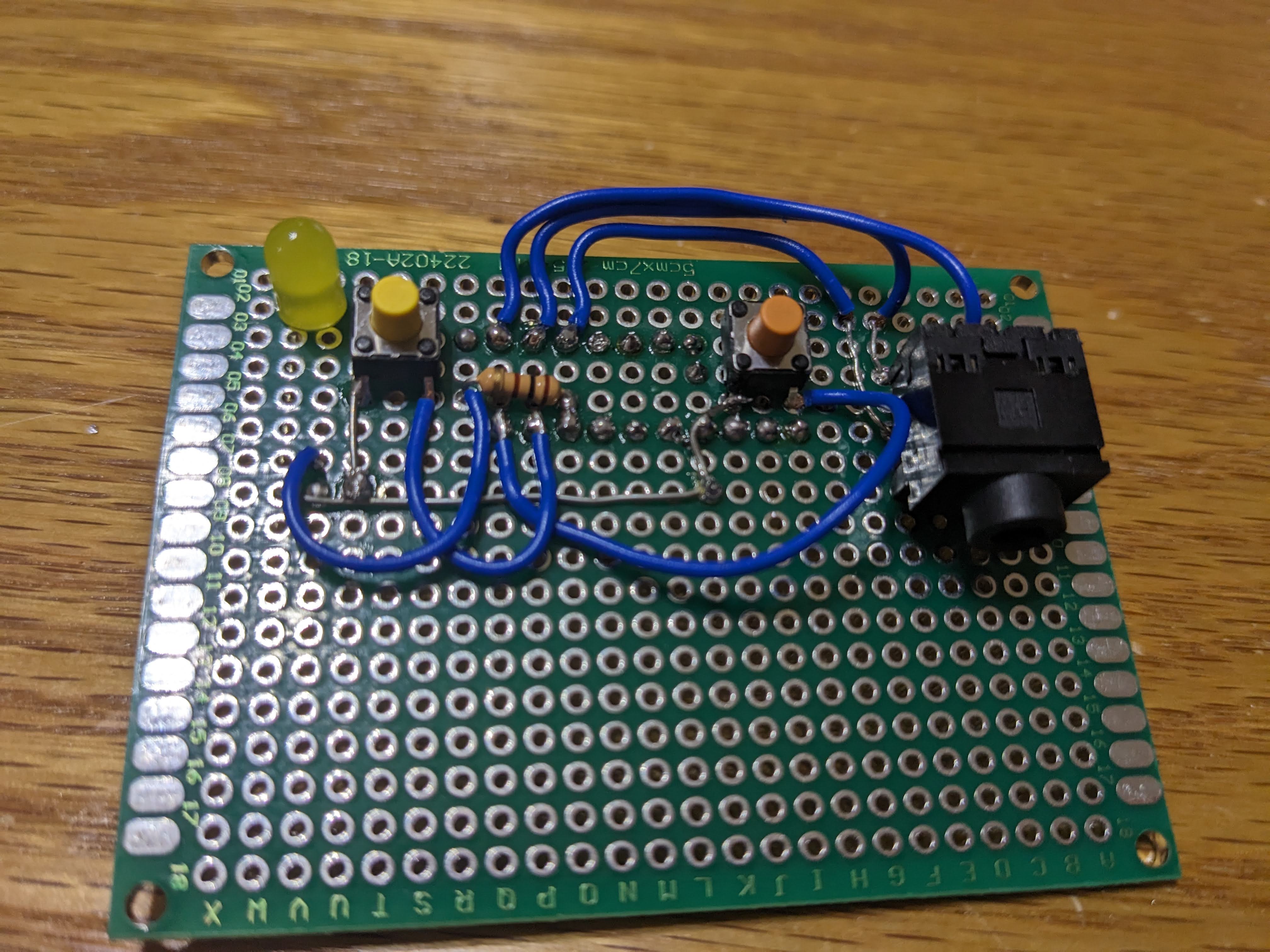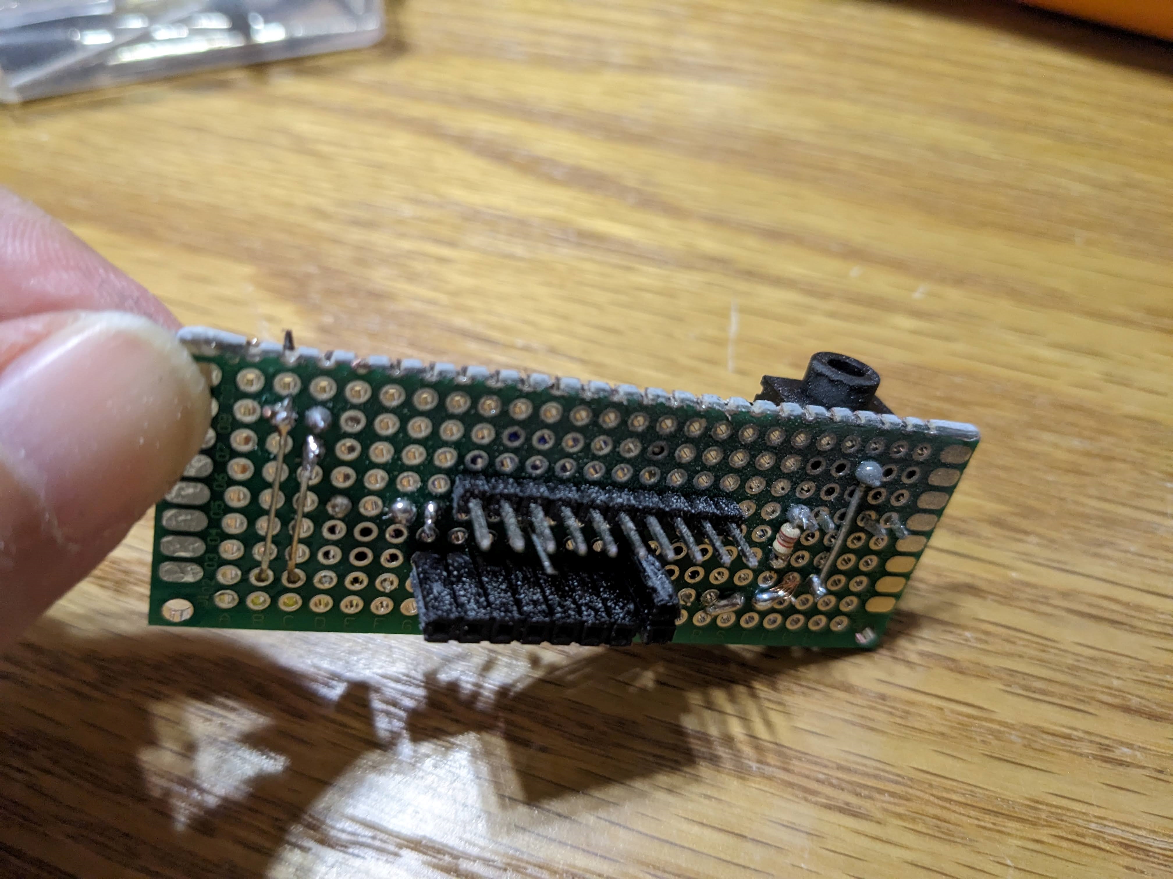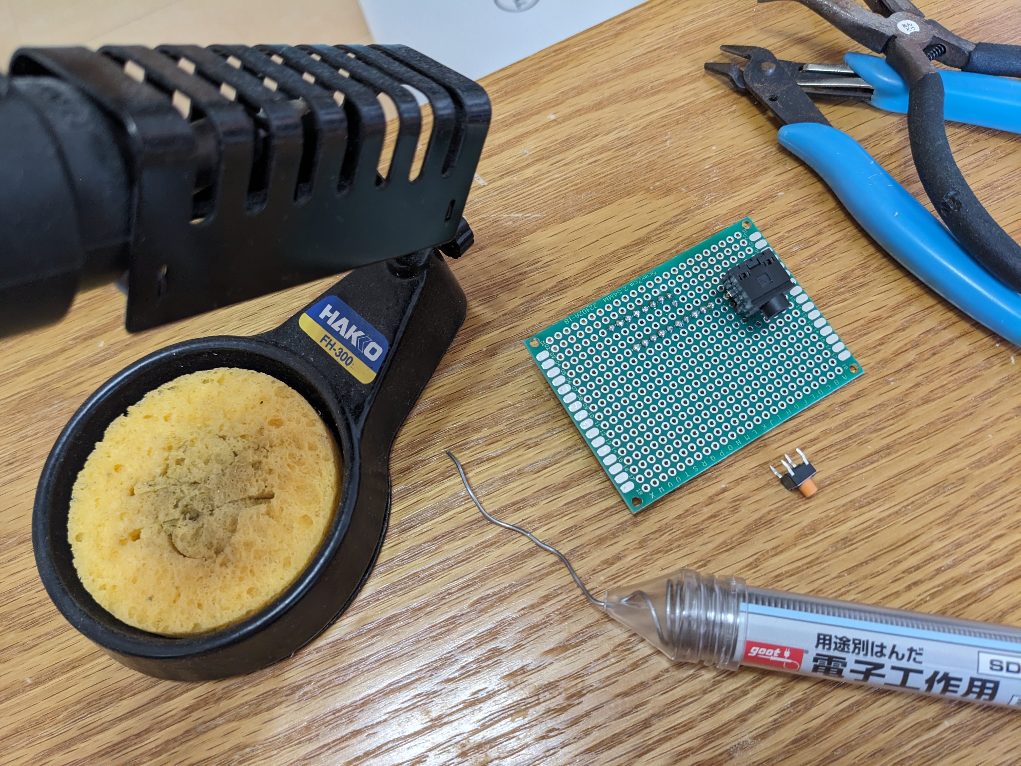 次にブレッドボードはユニバーサル基板(両面スルーホールタイプ)に置き換えました。
