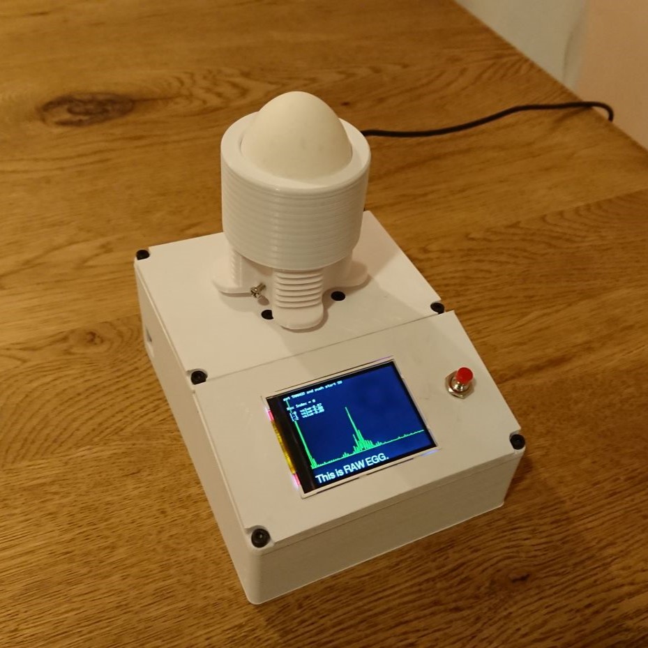 今回の開発では、たまごの内部情報を含んだ学習用データを採取するのにもっとも苦労しました。テスト装置を作成し、データ測定を開始したところ