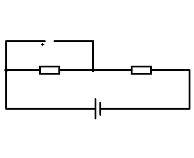 簡単です。直列に抵抗を2本つなぐと、電圧は上のように変動しますが、電流は一定になります。なので、