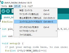 つづけて,スケッチ→コンパイルしたバイナリを出力を選びます.