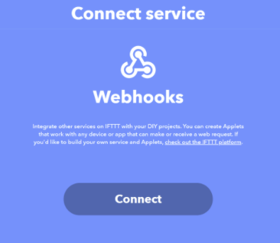 - Webhooksをクリックし、Connect service で [Connect] をクリックします