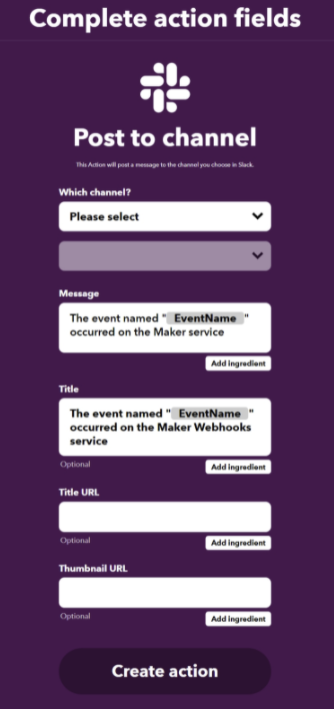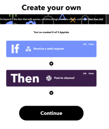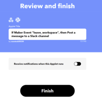 2. IFTTTでwebhookのURL取得と、slackへメッセージを送るように設定しておきます