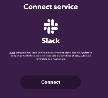 - Post to channelをクリックして、Connect service の画面で [Connect] をクリックします