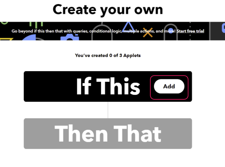 - IFTTT(https://ifttt.com/) へアクセスして [Create] をクリックします