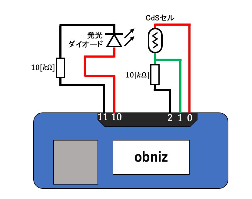 var led = obniz.wired("LED", { anode: 10, cathode: 11 });