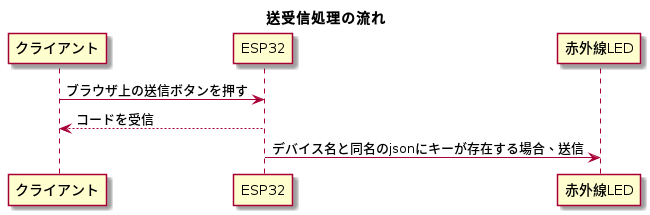 sendSignalBaseを呼び出すと、ESP32側に現在のパス+?sig=デバイス名&送信リモコンキー名が送信されます。