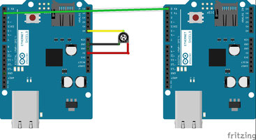 送信側ArduinoのTXと受信側ArduinoのRXを接続(緑線)し,受信側ArduinoとPCを接続すれば回路は完成です.