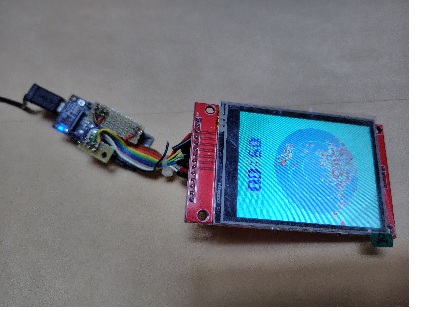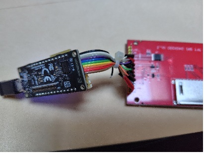 SPRESENSEメインボードと液晶を接続したものです。