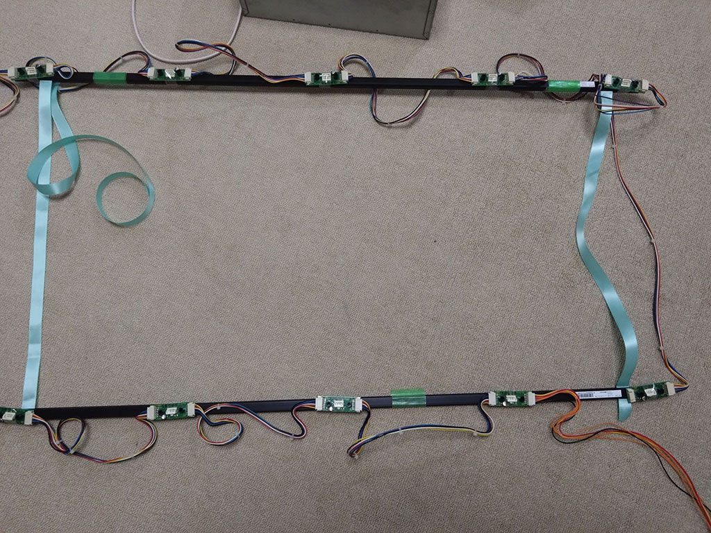 IR LED発光基板一式はディスプレイの周りに配置しますが、このように配置します。横方向は等間隔のようです。