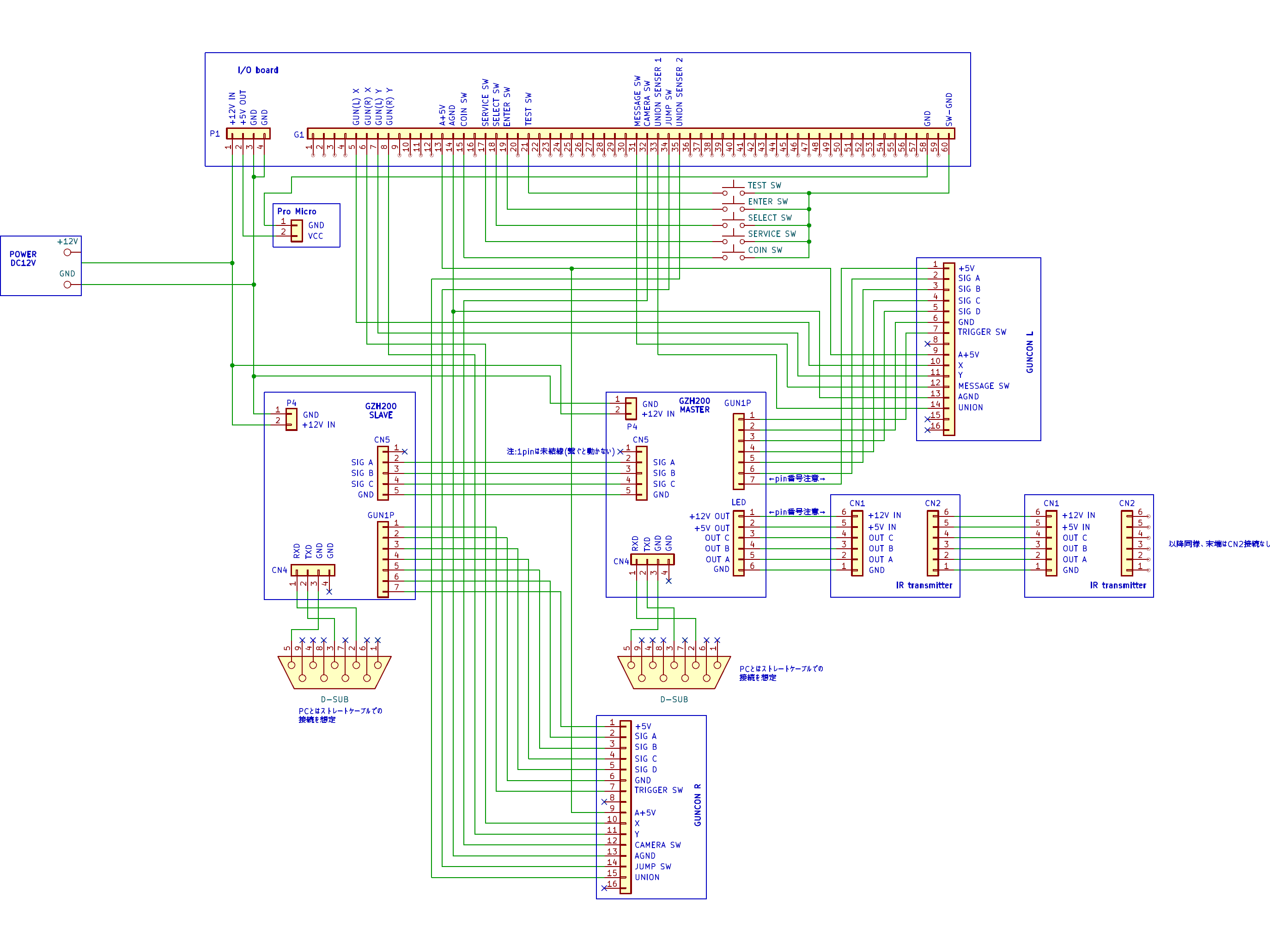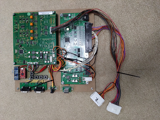 アーケードゲームのメイン基板は、主に周辺のIO基板などとJVSという統一規格で接続されています。電気的/プロトコル的にはメーカー間で互換性があることになっています。