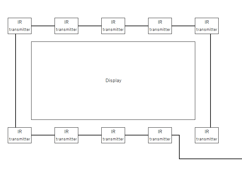 IR transmitterは、前述のとおり各種接続をし、ディスプレイを囲むようにを配置すれば準備完了です。