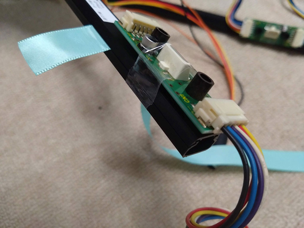 とりあえず動作確認なのでモールにテープで止めてあるだけという超適当ですが、基板にねじ穴もありますし、綺麗にねじ止めして、ケーブルもモールの中を通すようにするとそこそこ綺麗にはなると思います。