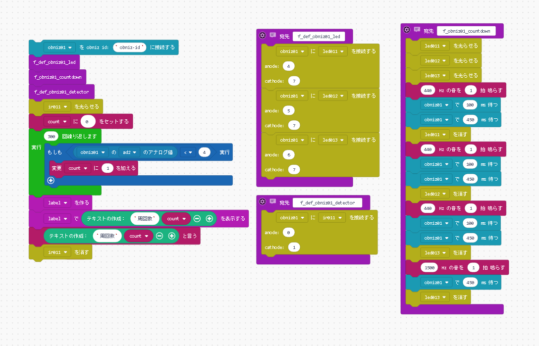 var obniz01, count, led011, ir011, led012, led013, label;