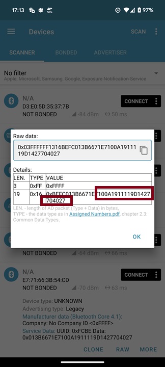 まだ長時間の評価はしていませんが、ひとまずはデータがアドバタイズされています。