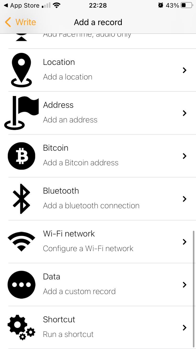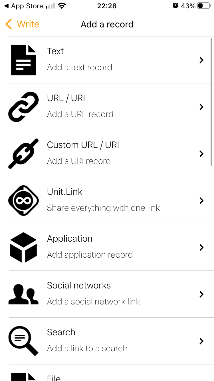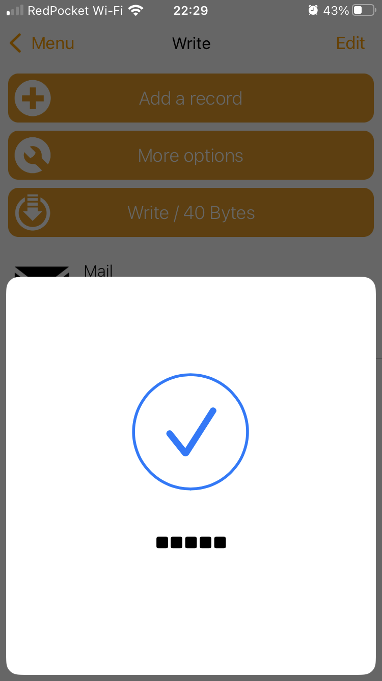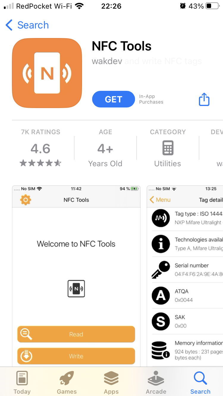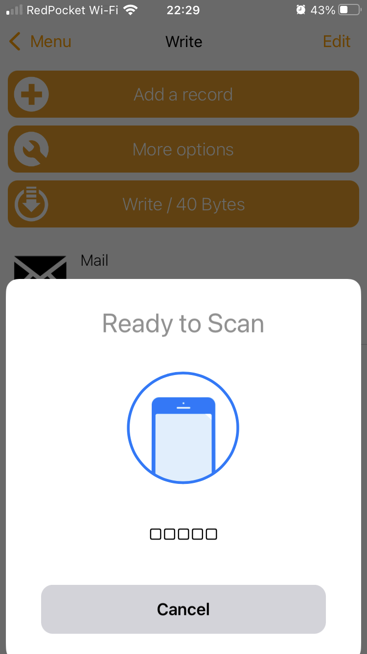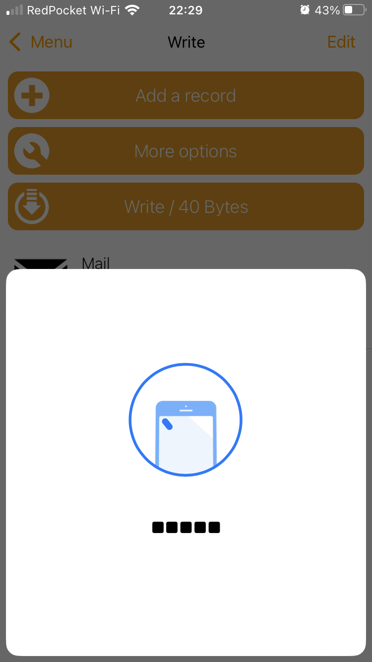 iPhoneの古い機種ではNFCリーダーを起動する必要あり。新しい機種(iPhone XS以降)だとバックグラウンドで読み取りできるはず。 - アプリ:NFC Tools https://apps.apple.com/us/app/nfc-tools/id1252962749