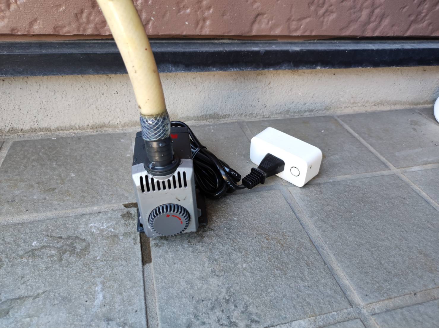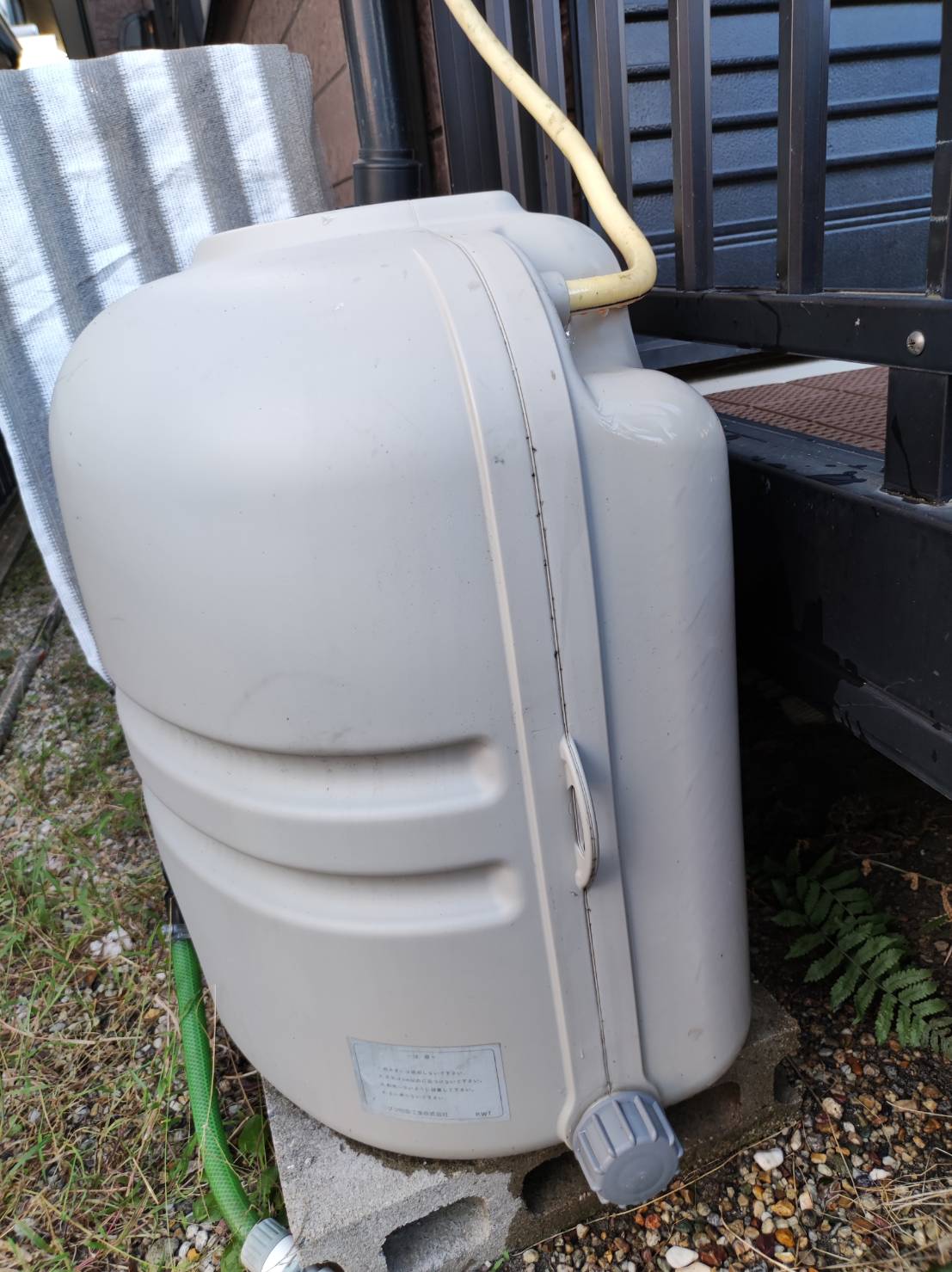 ・雨水タンク(中にポンプが入っており、ホーズがガーデンミストに接続している)