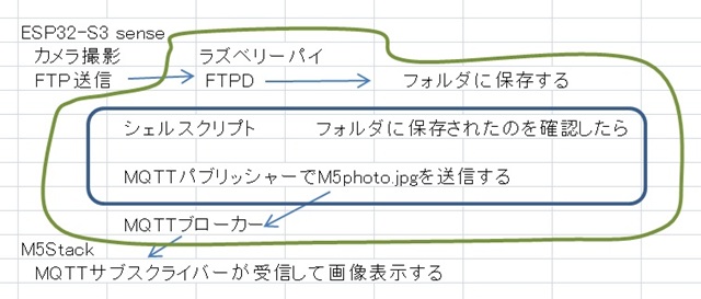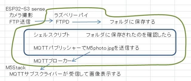 やっている事はラズベリーパイからMQTT-pubで送られた画像データを M5StackはMQTT-subでデータを受け取り画面表示しています。