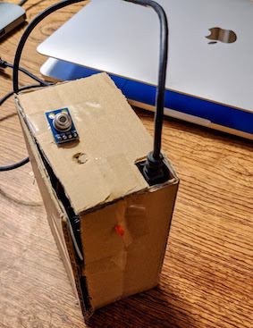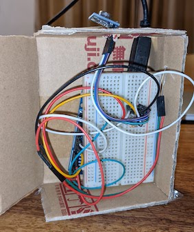 試作品なのでブレッドボードで作り、外観はダンボールを切って作りました。