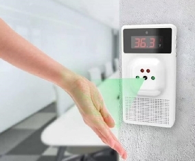 部品点数を減らすため、手をかざした際の急激な変化を検知して体温を自動測定します