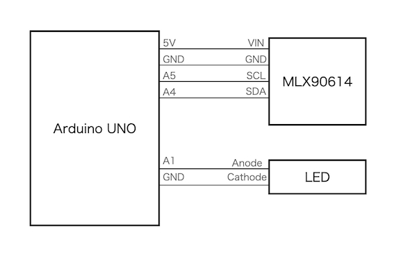 今回使用したモジュールに搭載されているセンサは、MLX90614というものでi2cによる値を読み出すことができます。