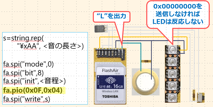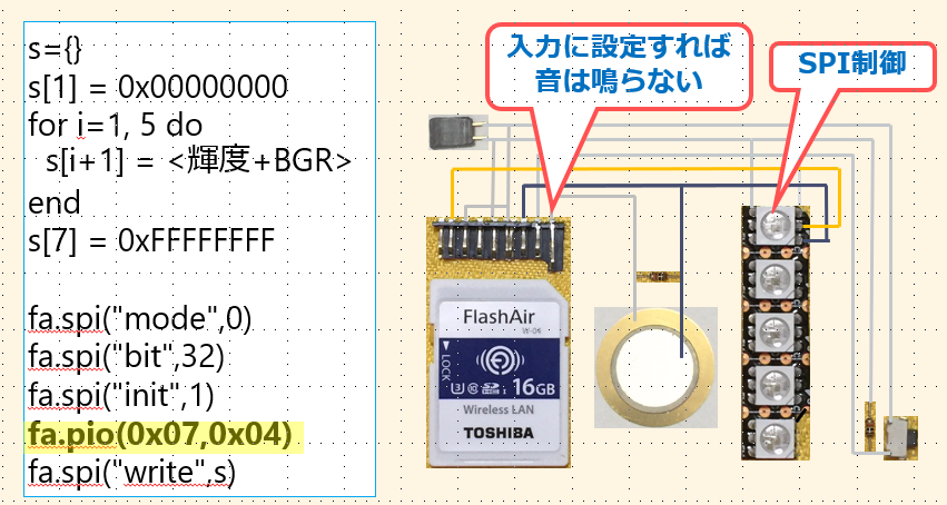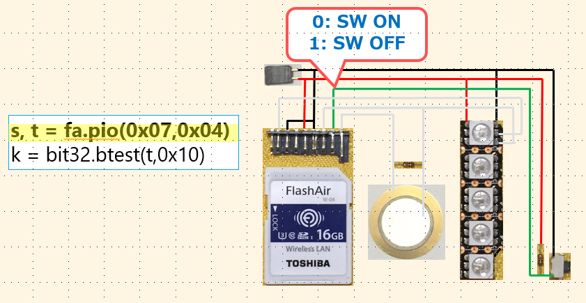 FlashAirはLuaというスクリプト言語で5本の汎用端子を制御することができます。