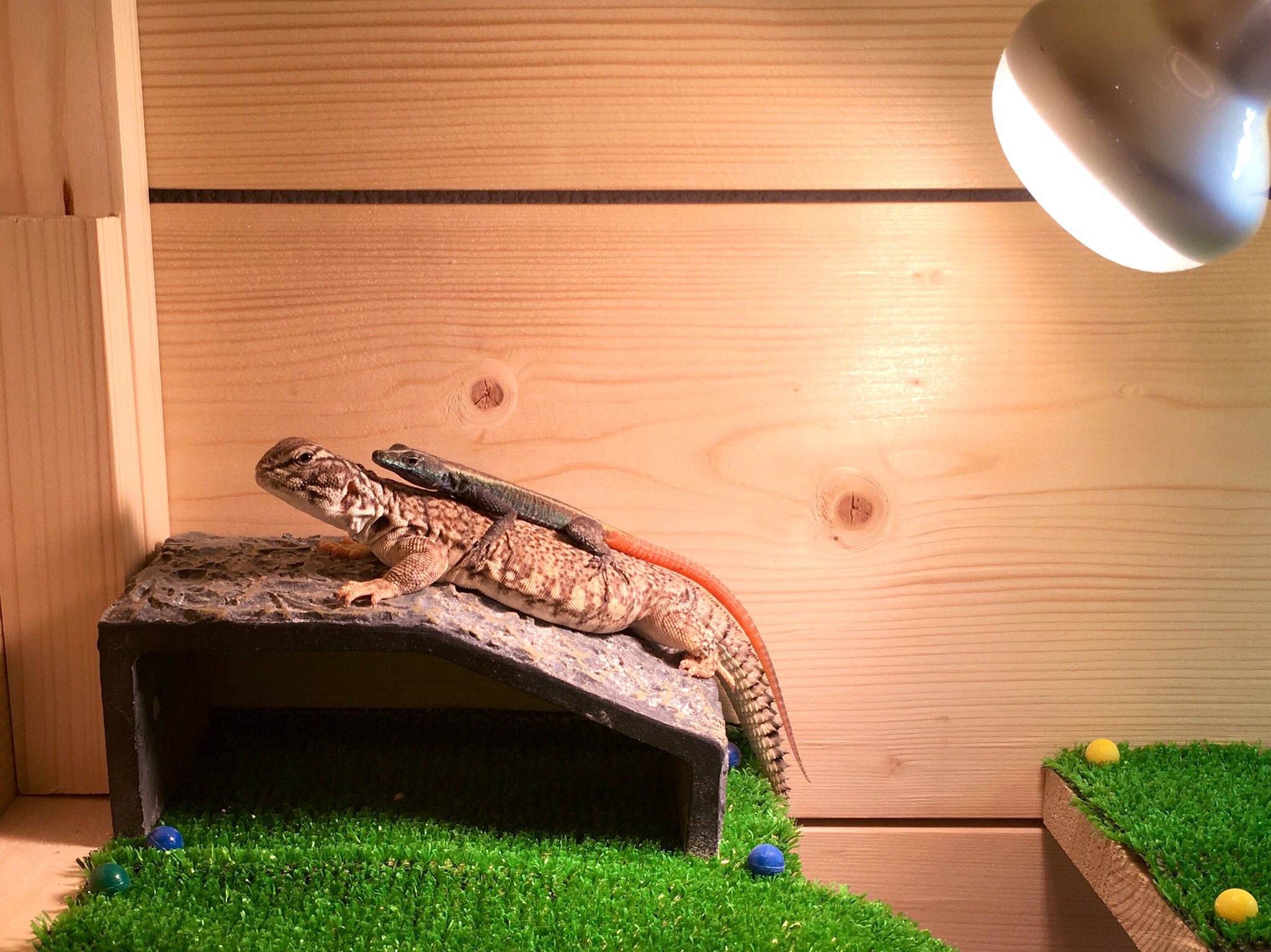 太陽光からの強い紫外線を浴びて体内時計を調整しているので,飼育する際は紫外線ライトの設置が必須です.
