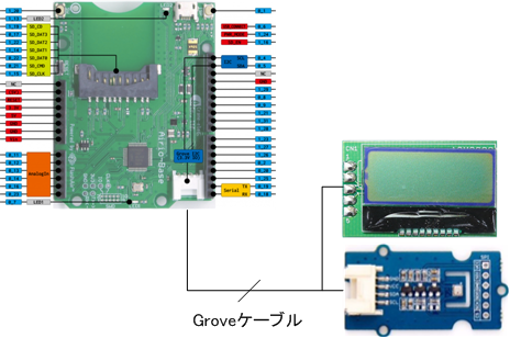 - 温湿度・気圧センサ(BME280): I2Cで通信するGROVEの温湿度・気圧センサモジュールです。